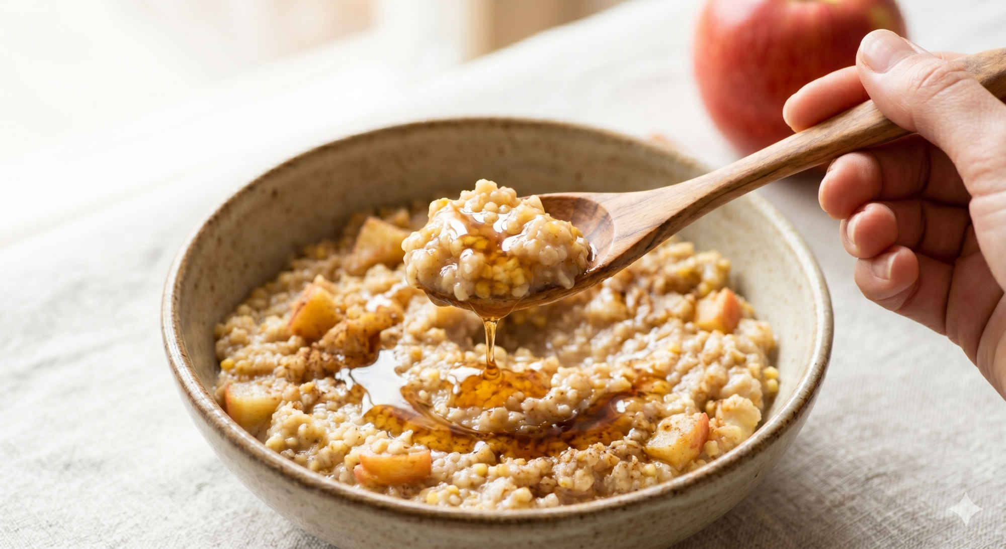 Vaša pečeň potrebuje ranné okno na to, aby dokončila upratovanie po noci. Keď jej namiesto tuku dáte vodu a živú glukózu z jablka, dovolíte jej dýchať. Výsledkom je ľahkosť, ktorú pocítite už po pár dňoch.